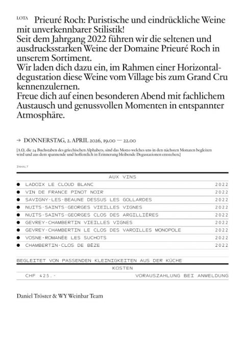 Seit Herbst 2024 dürfen wir Euch zusätzlich in unserem neuen Degustationsraum in der WY Weinbar begrüssen.